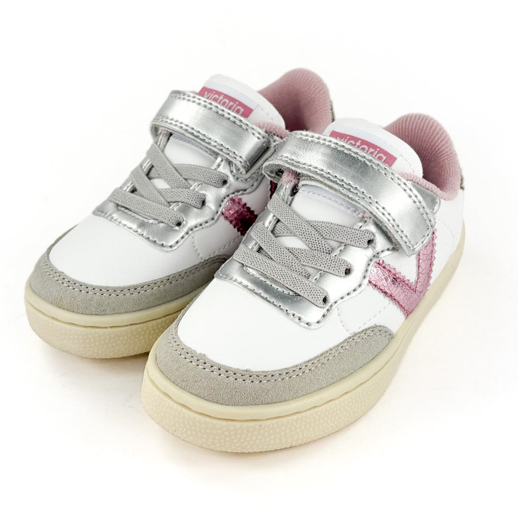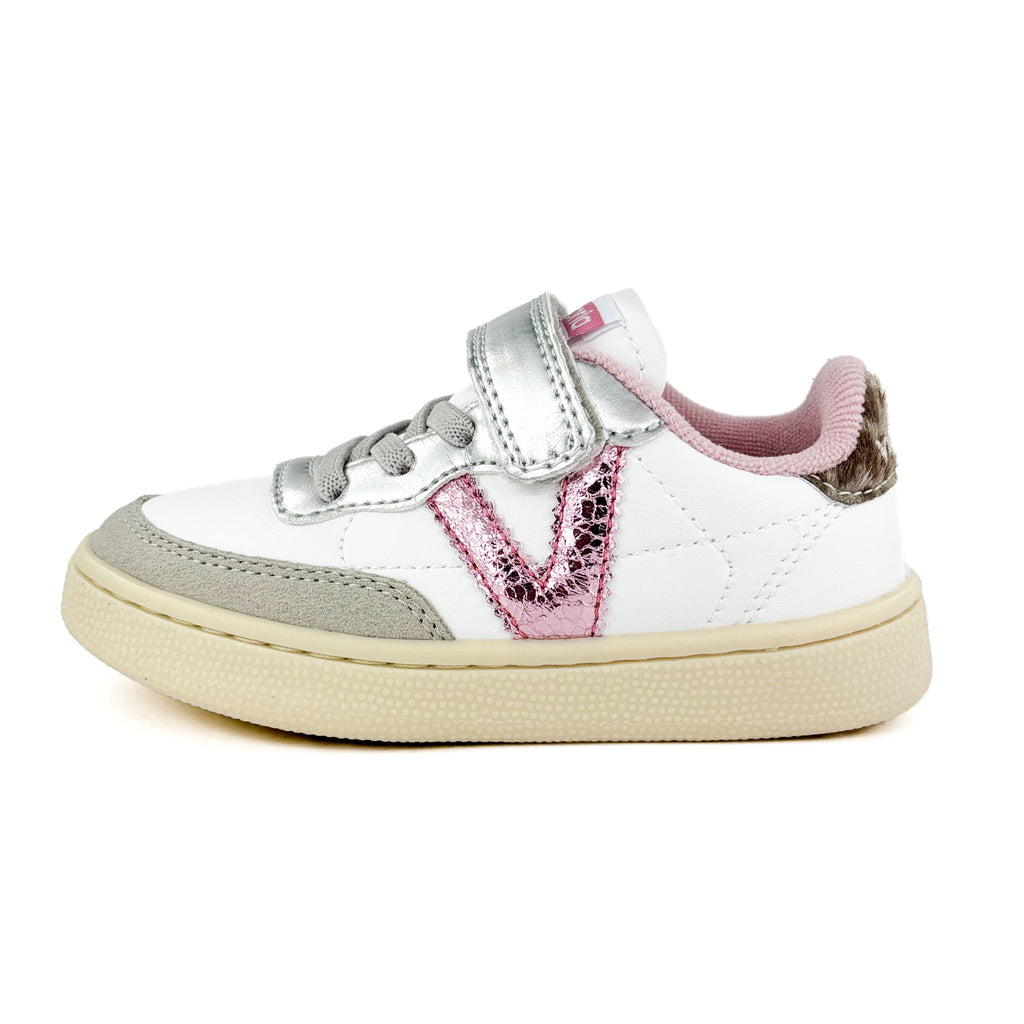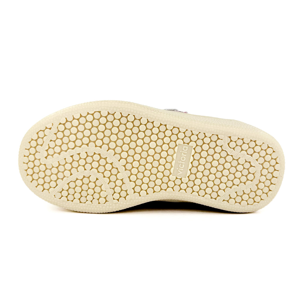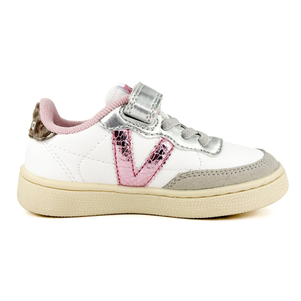 Adoptez un style décontracté et tendance avec ces baskets basses Victoria Plata. Leur fermeture à scratchs et élastique ajoutent une touche fonctionnelle, tandis que le V en rose brillant contrastant sur le côté apporte un petit détail élégant. La semelle extérieure en gomme assure une bonne adhérence, et le talon plat ainsi que le bout renforcé garantissent un confort absolu. Parfaites pour sublimer vos tenues casual tout en restant à l’aise !