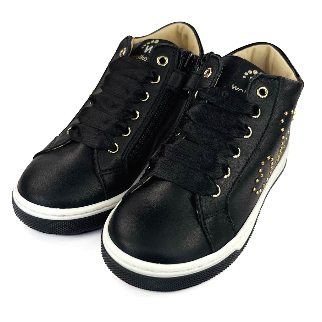 Optez pour ces jolies sneakers de la marque Walkey. Très élégantes et sophistiquées, elles sont en cuir noir, idéales pour un look mignon. Elles sont ornées de cœurs en or sur le côté, ajoutant une touche de raffinement à n’importe quelle tenue. Leur fermeture par lacets et zip assure une grande praticité tout en offrant un excellent maintien. L’intérieur et l’extérieur sont en cuir pour garantir confort et souplesse tout au long de la journée.
